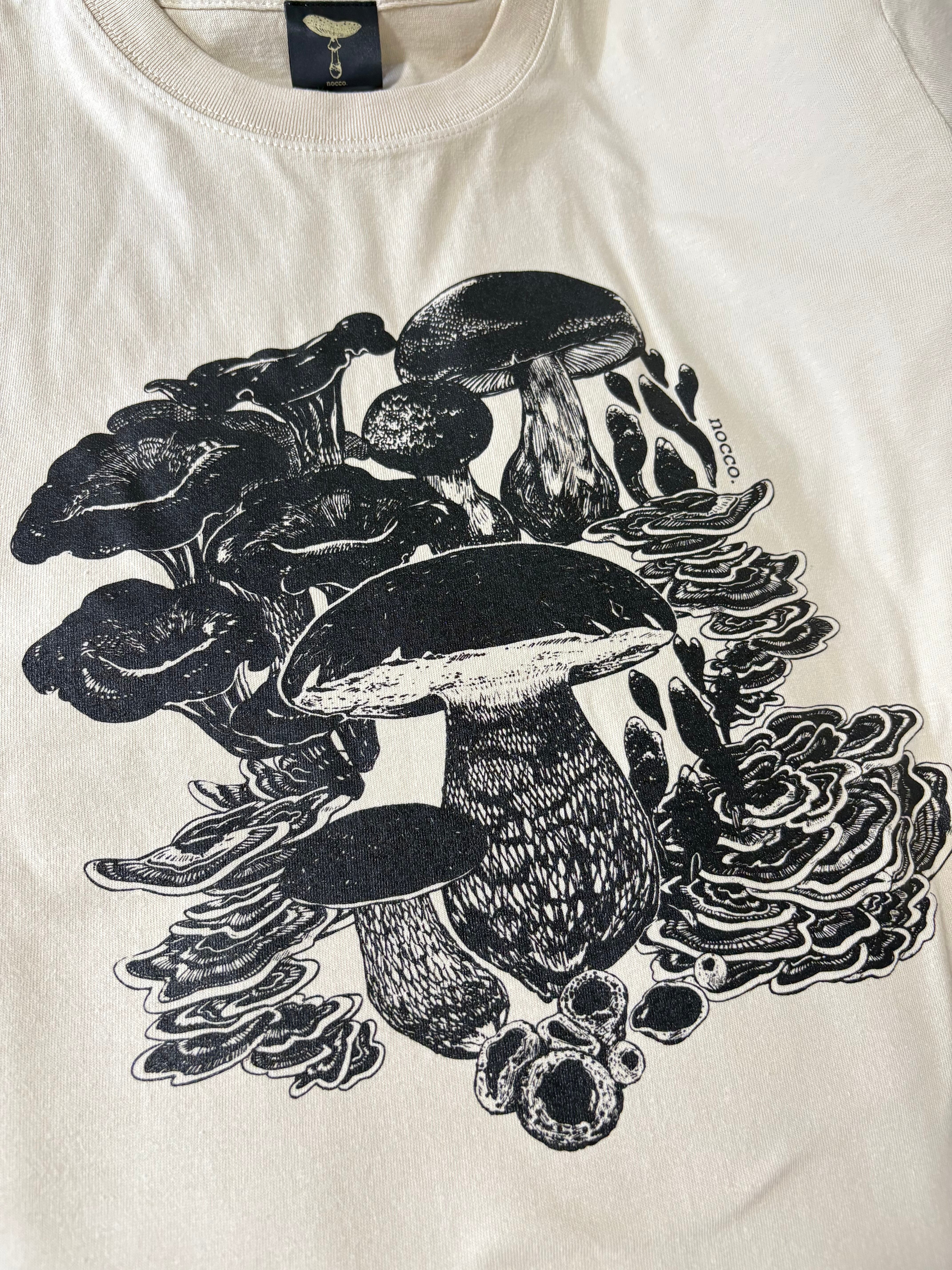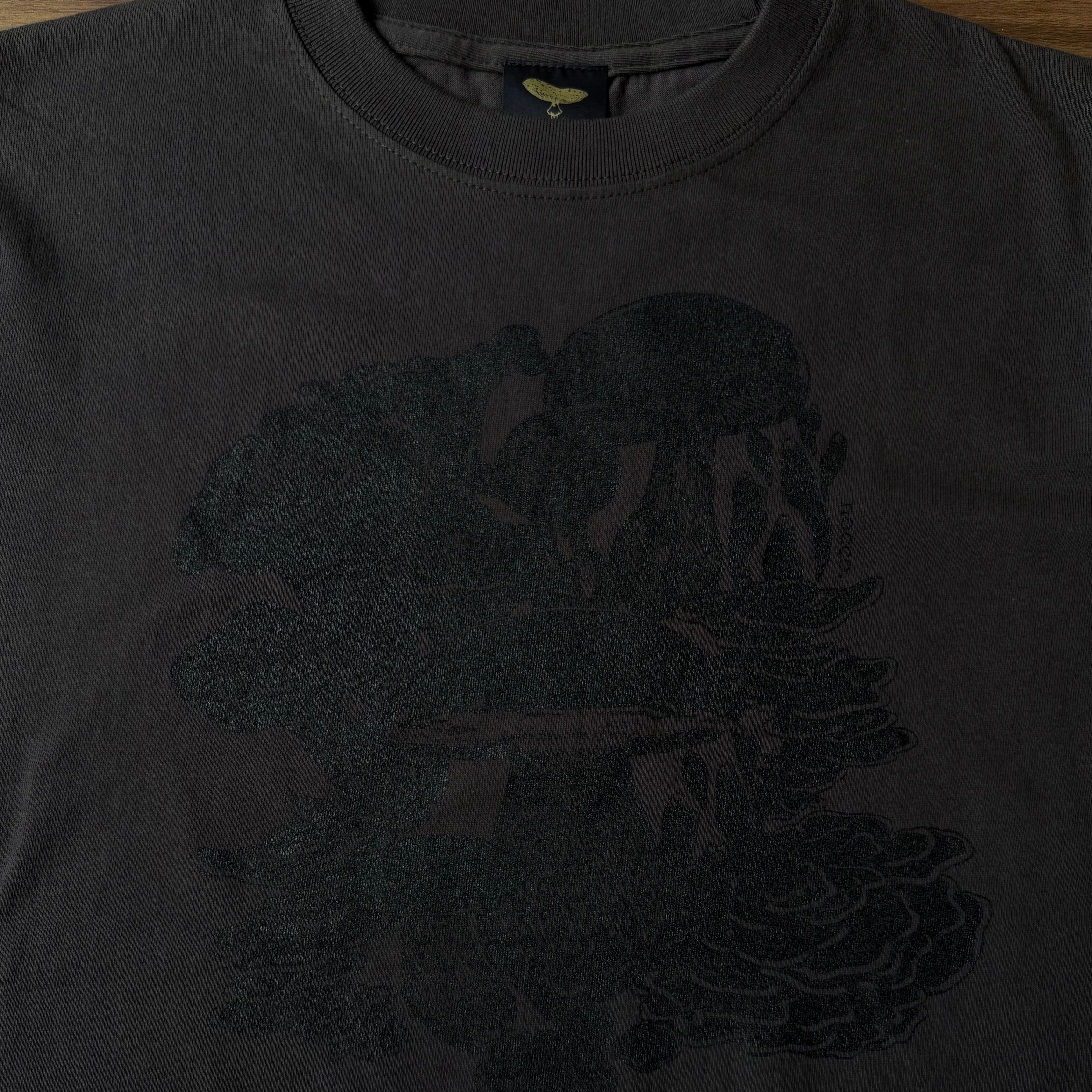 黒いきのこに包まれて、強く生きるをテーマにデザインした黒きのこTeeです。