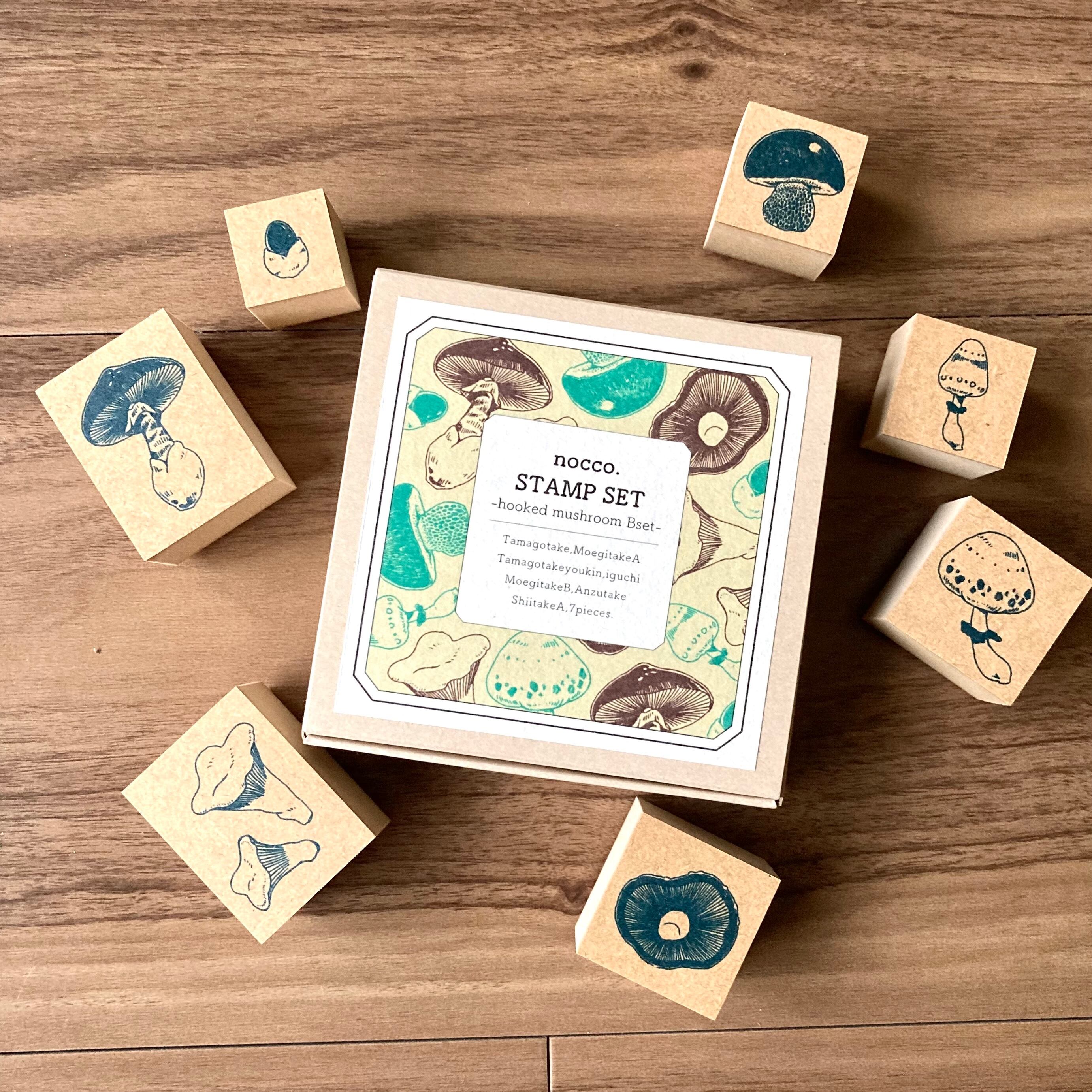 手帳やメッセージカードにポンと押せばかわいいきのこアイテムの出来上がり。